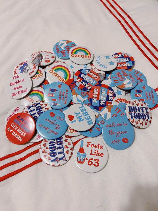 From game day to birthday we have it all! Our buttons are 2.4 inches and the perfect accessory!
