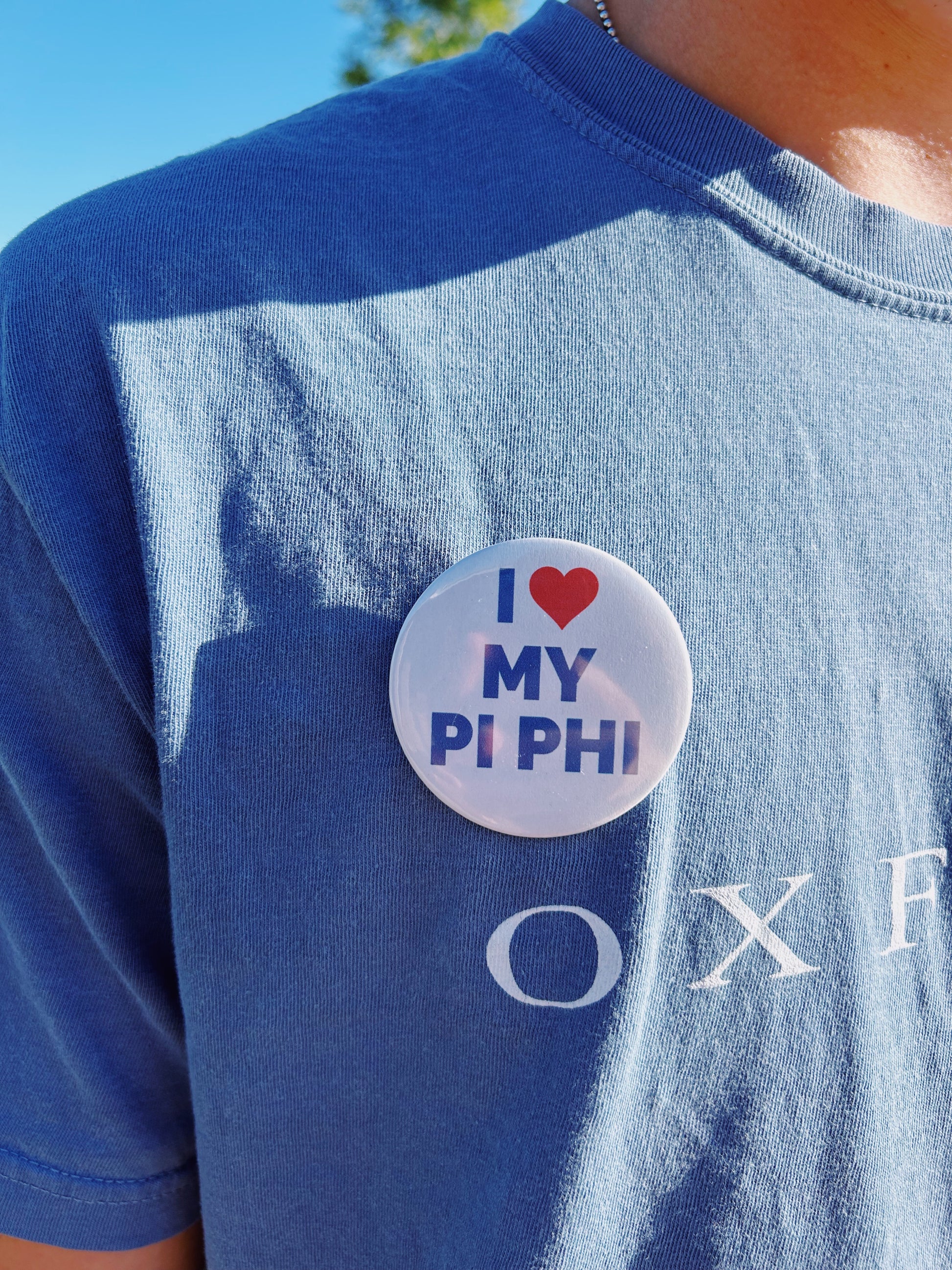 I love my sorority girl button! Perfect for the sorority boyfriends. 2.4 inches with metal backing.