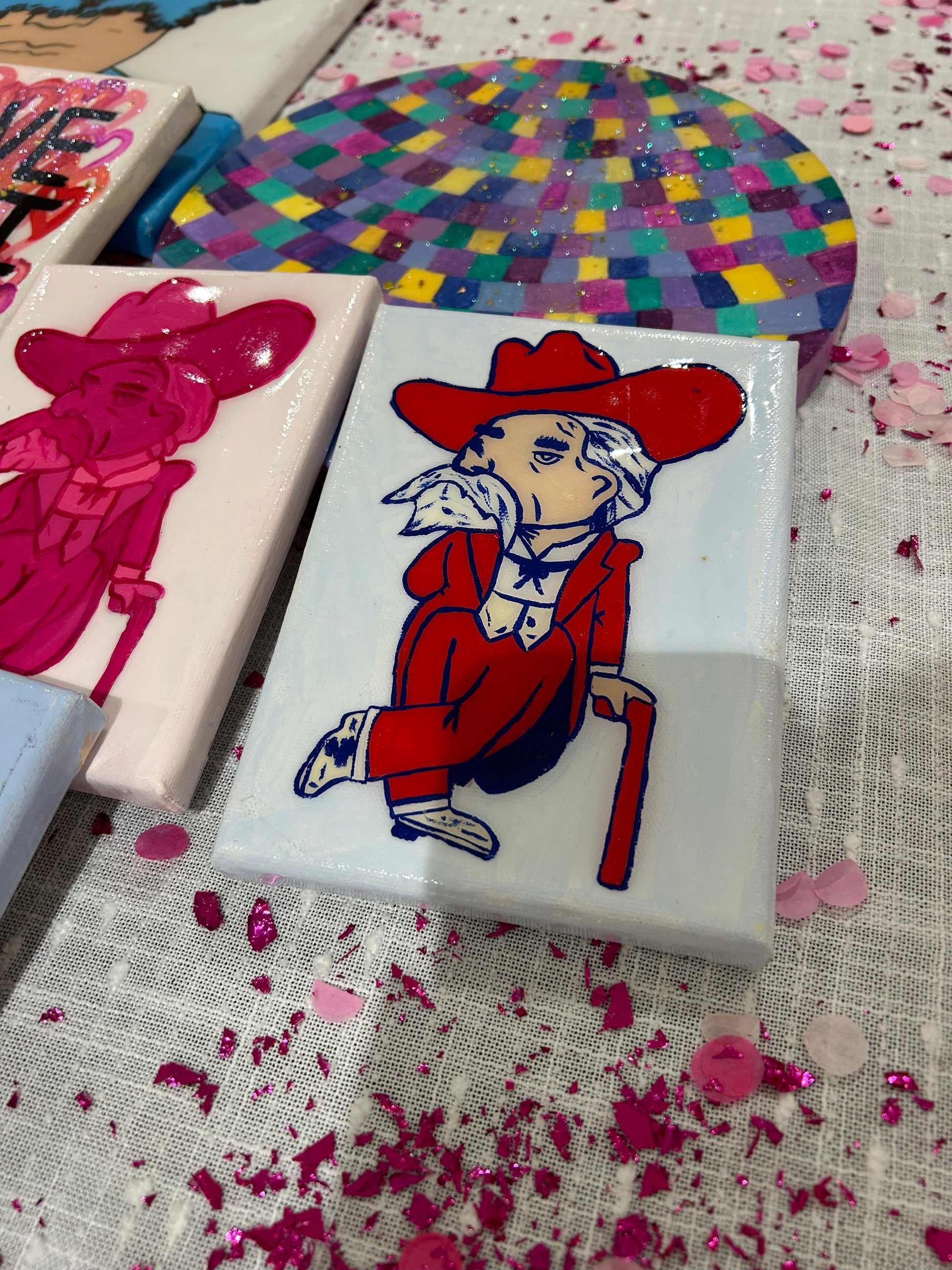 Get your walls talking with our Small Mascot Painting! This quirky and playful piece adds a touch of fun to any space. Hand-painted, it showcases your love for mascots in a unique way. Perfect for sports fans, schools, or anyone looking for a conversation starter. (Only available in small sizes.)